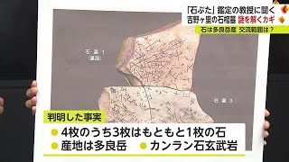 見つかった石棺墓で特に注目されているのがこの大きな石のふたです。県は石のふたのうち3枚はもともと1枚の石、さらに多良岳でとれたカンラン石玄武岩であると発表しました。