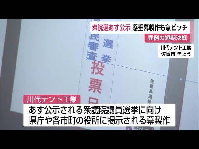 衆院選に向け横断幕や懸垂幕の製作も急ピッチで進む【佐賀県】 (26/01/26 12:00)