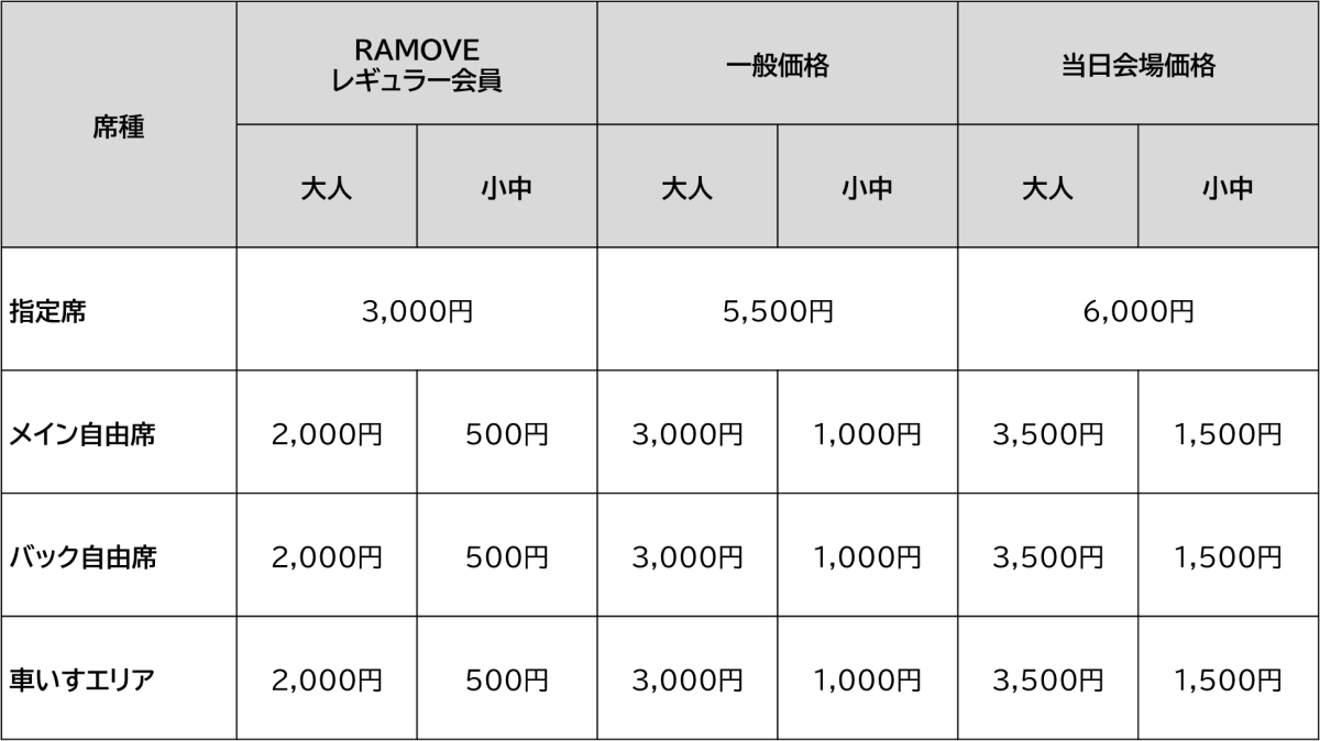 ※未就学児は大人の膝上であれば観戦は無料