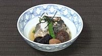 アジを丸めて楊枝でとめると見た目も綺麗で崩れにくい。シイタケ・シシトウ・ナスを器に盛り、ダイコンおろし・梅干し・海苔をトッピングで味にアクセント♪酸味とさわやかさを味わえます。