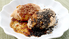TOP 記事一覧 レシピ きび餅 レシピ recipe 2018.01.18 きび餅 余ったお餅を使ったきび餅を紹介します!!きな粉+すりゴマで栄養価も風味も増すのでおやつにぴったり♪ 材料(6個分) もちきび 1/2カップ/水 3/4カップ/切り餅 2個(小さく切り分けておく)/きな粉 適量/すりゴマ(白・黒) 適量/塩 少々 黒蜜 黒砂糖 1/4カップ/水 1/4カップ 鍋に黒糖と水を入れ煮立たせる とろみがついたら、火を止める ポイント:冷えるととろみが増すので煮立たせすぎない もちきびはザルに入れてよく洗っておく フライパンにもちきびと水、塩ひとつまみを入れ火にかける ヘラで混ぜながら、沸騰させる 沸騰したら火を弱火にする きびもちを混ぜてみて鍋底が見えたら切り餅を入れる フタをして水分がなくなるまで炊く 水分がなくなったら火からおろし10分程度蒸らす きびもちと切り餅をしっかり混ぜ込み、6等分する ポイント:濡れたスプーンを使うとわけやすくなります きな粉をまぶす すりゴマをまぶす 黒蜜をかける きび餅 TAG LIST #その他のレシピ 前の記事 一覧に戻る 次の記事 RECOMMEND