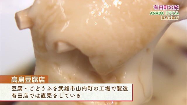 TOP 記事一覧 グルメ まるでデザート!直売所限定の人気黒蜜ごどうふ!有田町「高島豆腐店」 グルメ gourmet 2023.09.28 まるでデザート!直売所限定の人気黒蜜ごどうふ!有田町「高島豆腐店」 有田町にある「高島豆腐店」創業70年を超えるお店です。 以前は工場として使われていましたが、現在は直売所となっています。 豆腐・ごどうふを武雄市山内町の工場で製造しており、武雄工場ではごどうふ作り体験も行っています。 変わり種のごどうふ? 黒蜜ごどうふ 550円 ※直売所限定 豆腐プリンだと豆腐の味が強いですが、こちらはもちもちスイーツに変わっていて新食感です。 卸先のお店では、ごどうふパフェとしても販売 黒蜜きなこパフェ 700円 ※ギャラリー有田で販売しています。 生クリームなどが入っているパフェにごどうふが沢山入ったスイーツです。 有田名物「ごとうふ」のパイ 330円 ※MARUBUN SHOP&BAKERY CAFEで販売 ごどうふを使ったパン!パイ生地にごどうふが入っています。 ごどうふの上には、ほんのりチーズがのっており、そこにバジルソースがかかっています。火が通っているためごどうふの食感が変わり、柔らかくてフワフワです。 ごどうふは色んな調理方法に適しています。 【2023年9月27日放送 かちかちPress 波田陽区のさがんまち珍道中より】 関連記事 嬉野に"コストコ"!?コストコ商品が並ぶ「ミニコス 嬉野店」Part.1【食品】 大豆にこだわった豆乳専門店「あしかり豆美人」 トロトロの"嬉野湯豆腐"と豆腐より旨い"寄せ豆腐"「福田とうふ店」Part.1 とろとろふわふわ 温泉湯豆腐「宗庵 よこ長」 ※各記事に掲載している料金やサービスについては、記事を掲載した時点での情報になります。掲載当時から料金やサービスが変更になっている場合がございます。 TAG LIST #和食 #伊万里市/西松浦郡 #波田陽区のさがんまち珍道中 #かちかちPress 前の記事 一覧に戻る 次の記事 RECOMMEND