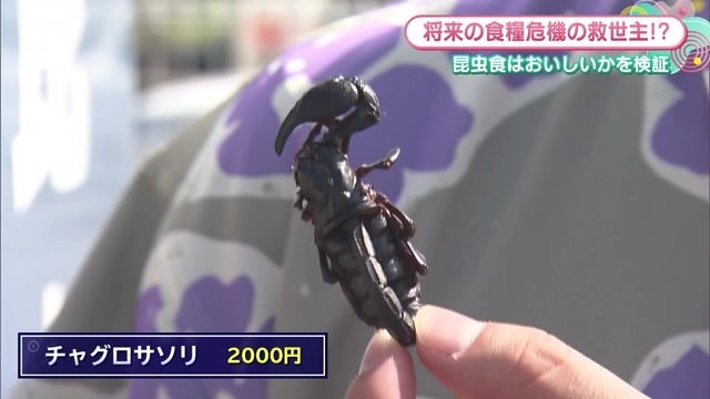 TOP 記事一覧 グルメ 【※閲覧注意】昆虫食はおいしいか検証!「チャグロサソリ・タランチュラ・オケラ」 グルメ gourmet 2024.08.31 【※閲覧注意】昆虫食はおいしいか検証!「チャグロサソリ・タランチュラ・オケラ」 テーマは「食糧危機を救う!?昆虫食はおいしいのかを検証」 ※今回は昆虫食に関する記事なので苦手な方は十分に気を付けてご覧ください。 世界の人口増加に伴う食糧危機に対し、栄養価の高い昆虫食が注目されています。 佐賀市の佐賀大学近くにある昆虫食が販売されている自販機にやってきました。 たくさんの種類のラインナップがあります。 チャグロサソリ 2,000円 人気がある商品だそうです。 原材料名は「チャグロサソリ」と「塩」のみの様です。 サソリの爪と、尻尾を食べてみました。 出演者は「無味でおいしくは無い。エビの尻尾を真っ黒に焼いたようなイメージで、食べられないわけではない」と話していました。 タランチュラ 2,000円 罰ゲームに大人気の商品です! エビに近い味で、想像よりおいしいです! 昆虫食(ミックスバグ)をアラビアータに入れておいしいか検証! 販売元の方から「ニンニクとパスタと相性がいい」と聞いて試してみました! ミックスバグ 1,400円 人気ナンバー1の商品です。 オケラ・コオロギなどたくさんの種類が入っています。 試食してみました! トマトの甘みとニンニクのパンチが、オケラの香ばしさと少し合う気がします。 検証結果は「アラビアータと昆虫は合う」(あとでスタッフが確認したらおいしくはなかったです) 【2024年8月26日放送 かちかちLIVE 勝手に大検証!より】 関連記事 「好きな佐賀弁」はなに? 佐賀県民に聞き込みをすると様々な佐賀弁が! 昆虫食はどんな味?昆虫食自動販売機を検証! 良いお肉を使った"トマトソースのチーズハンバーグ"「ハンバーグレストランZOO」【佐賀市】 「祖父母の花畑を守りたい」志田フラワー園内にカフェオープン!オーナーはフランスで修業「Ensoleille」【佐賀県嬉野市】 ※各記事に掲載している料金やサービスについては、記事を掲載した時点での情報になります。掲載当時から料金やサービスが変更になっている場合がございます。 TAG LIST #かちかちLIVE #佐賀市 #勝手に大検証 前の記事 一覧に戻る 次の記事 RECOMMEND