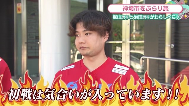 治田選手「めちゃめちゃ走って、監督含め熱い選手が多いです。僕たちの気合い、初戦に対する思いがファンの皆様に伝わるぐらい、気合いが入っています!」