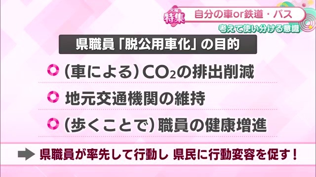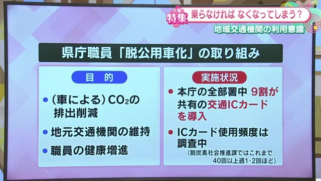 県としては、公用車ではなく公共交通機関を使うことで「バスや鉄道の運賃による経費は出るとしても、近年高騰しているガソリン代の抑制や公用車の走行距離を減らして維持費を削減することにもつながれば」と、総合的なコスト削減効果を期待しています。
