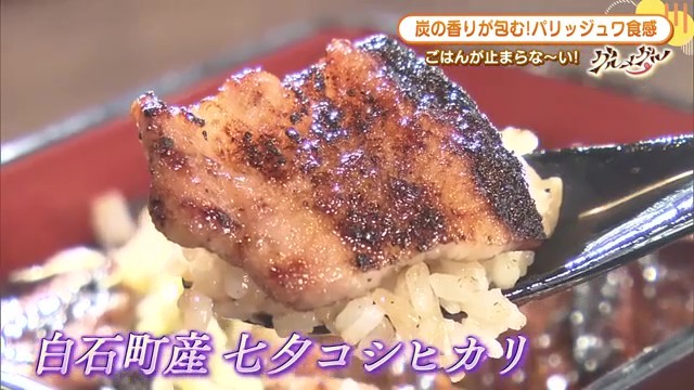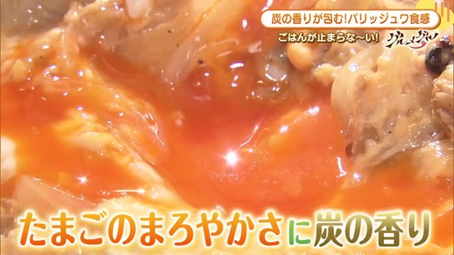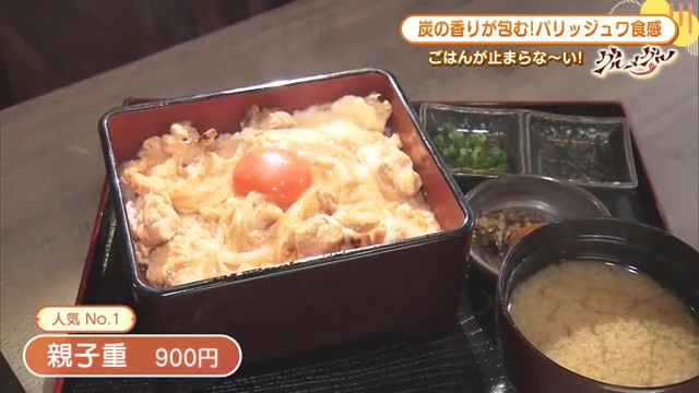 有田鶏を使用し、胸肉よりジューシーでもも肉よりあっさりとした肉質の「肩肉」を使用しています。トロトロの卵と一緒にいただくと、「プリプリで食べれば食べるほど甘みもジューシーさが出てきますね。卵の甘さと卵のまろやかさに加わって炭の香りがグッときますね」という絶賛の声も。