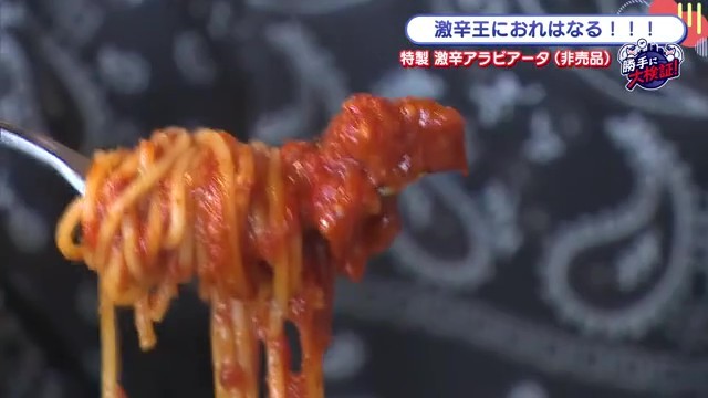「スミレキッチン」は普段は激辛料理を提供していないお店ですが、今回の企画のために特別に激辛パスタを開発してくれました。店主は「通常はやってないんですけど、いろんなところで食べてらっしゃると聞いたんで、うちでもぜひ食べてもらいたいなと思います」と、挑戦への熱意を語ってくれました。※非売品