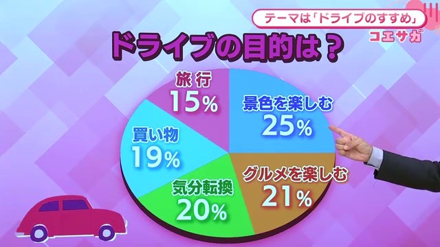 視聴者がドライブに出かける目的についてアンケートを実施したところ、以下のような結果となりました。