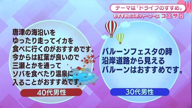 30代男性からは「バルーンフェスタの時の沿岸道路から見えるバルーンはおすすめです」という投稿があり、佐賀の代表的なイベントとドライブを組み合わせた楽しみ方も紹介されました。