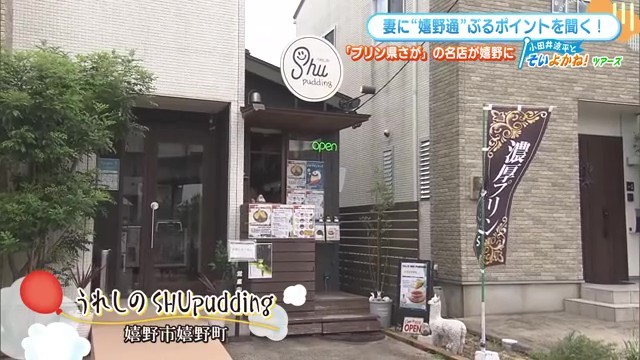 続いて訪れたのは、地元で人気のプリン専門店「うれしのSHUpudding」です。店主は元和食料理人という異色の経歴を持ち、「和食料理店で食べた絶品プリンを地元で売りたいと思って始めました」と開店のきっかけを語りました。
