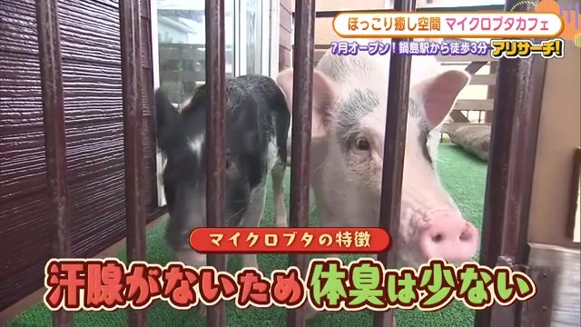 リポーターが「匂いしないですね」と実感したように、マイクロブタは汗をかかないため、匂いが少ないのが特徴です。「手に付いても全く匂いしないですし、汗腺がないので汗をかかないんです。それで匂いが少ないと言われています」とオーナーさんが説明するように、清潔感もマイクロブタの魅力の一つです。