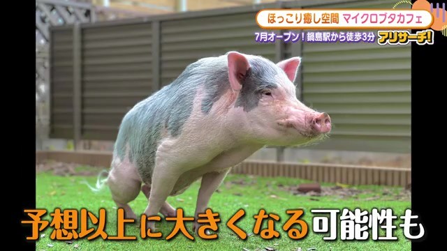 オーナーによると、「ミニブタさんは100kg以下の豚さんで、40kg以下の豚さんがマイクロブタになります。豚の中で一番小さいのがマイクロブタです」とのこと。