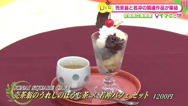 この特別展を記念して、サガテレビ1階のJONAI SQUARE CAFEでは「売茶翁のうれしのほうじ茶×若冲パフェセット」というコラボメニューも提供されています。