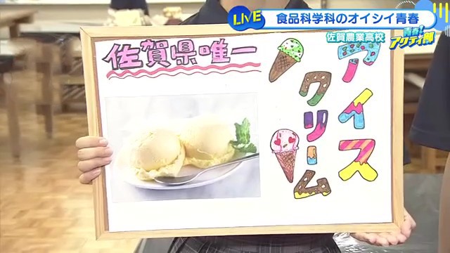 食品製造コースでは、「クッキーやマフィン、ビスケットといった加工品を始め、佐賀県で唯一、製造を行っているアイスクリームの製造実習があります」