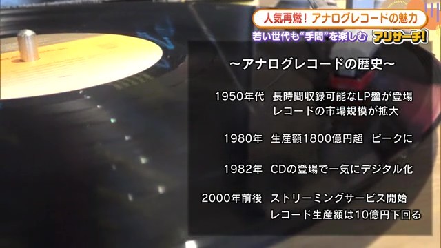 由井さんはレコードの魅力をこう語ります。「まず見た目ももちろんなんかテンション上がる。あとは置いて針を落とす瞬間。溝に埃が溜まっていたりとかしたら、同じところ何回も繰り返してわーってなったりするのもまた魅力かなと思ってます」