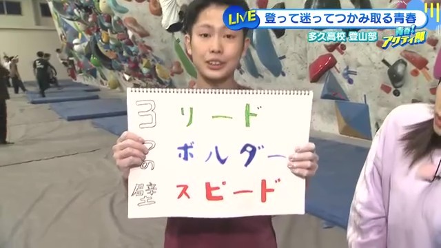 番組の最後に、副部長は今後の目標について語りました。「今年の国民スポーツ大会では、自分が得意としているリードで決勝に残ることができなかったので、来年の国民スポーツ大会ではリードで決勝に残れるように、今後も頑張っていきたいと思います」