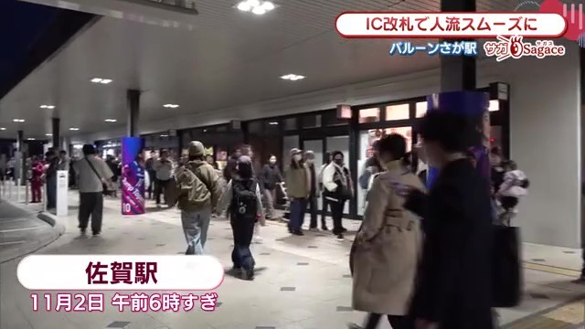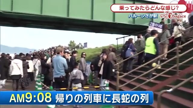 午前9時過ぎのバルーンさが駅入り口では、帰路につく人々で大混雑していました。