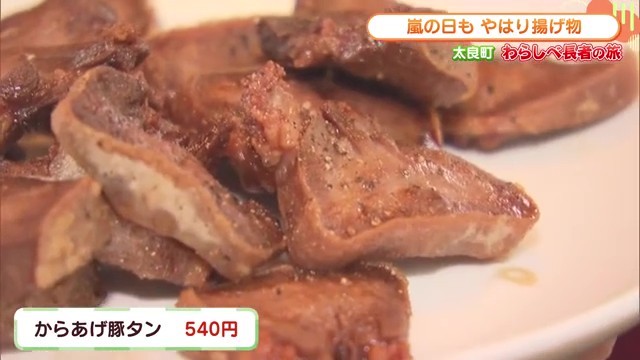 豚タンを使った唐揚げは珍しく、おつまみとしても好評。噛みごたえと塩気があり、個性のある味わいです。価格は540円。