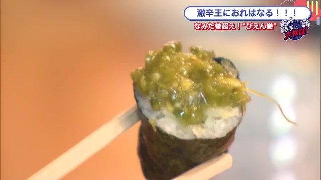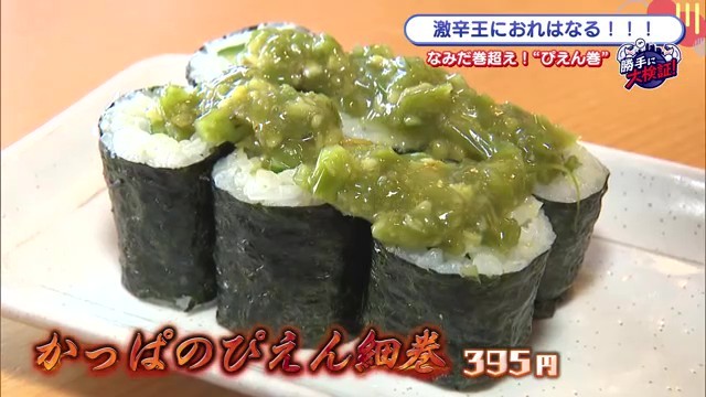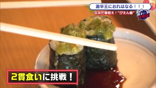 同店の激辛メニューの正体は「ぴえん巻」。店主によると「普通だったら細巻きで涙巻きっていうのがあるんですけども、それのさらに上を行くぴえん巻っていうのがある」とのことで、既存の「涙巻き」という激辛メニューをさらに上回る辛さを誇る究極の一品です。