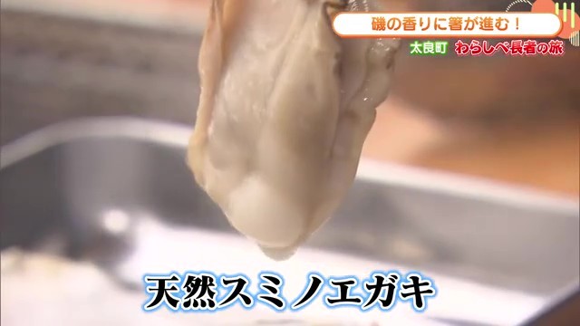 店に入るとすぐ目に飛び込んでくるのは、竹崎カニや天然のスミノエガキ。スミノエガキは川の近くで育ち、冷たい水が豊富に流れ込む環境で育つため、成長が早く身がしっかり詰まっているのが特徴です。