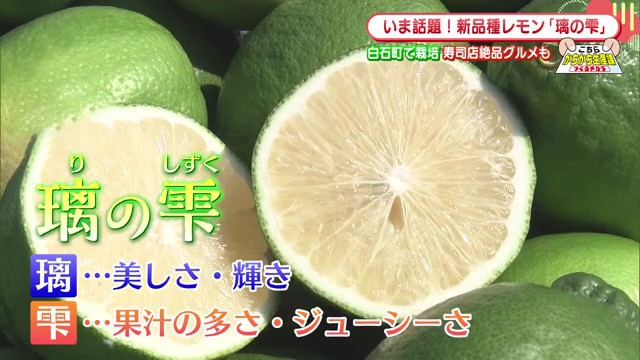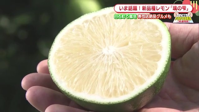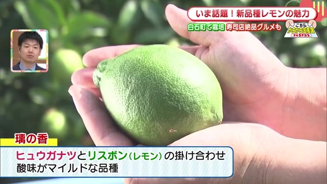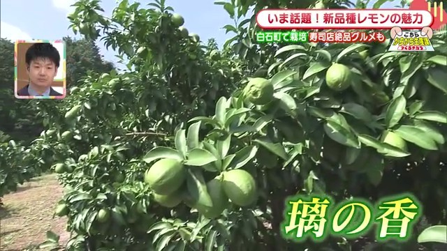 璃香の特徴的な点は、収穫時期でも緑色を保っていることです。「黄色いレモンが一般的ですが、それはほとんど輸入で向こうから来て黄色くなって消費者の方に渡るということですけども、この場合はグリーンのまま提供できるということで、いかに新鮮かというのがこのグリーンを強調している」と関係者は説明しています。