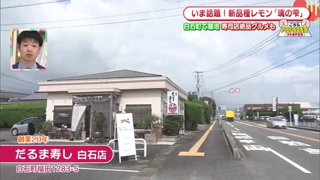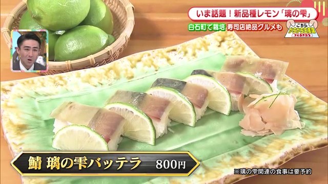「璃の雫」の魅力を存分に活かした料理が味わえるのが、だるま寿し白石店です。店主の小野さんは数年前からこのレモンを使った料理を提供しており、特に「璃の雫で締めたサバのバッテラ」が人気です。