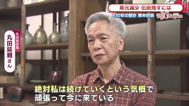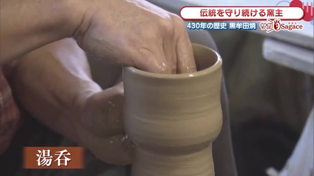 「黒牟田焼」と大きく書かれた看板が迎える工房で、現在も残る丸田宣政窯の二代目、丸田延親さんが伝統の技を守り続けています。