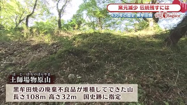 「昭和初期までこの山に焼き物どんどん捨てて。昔はこの集落に300人、人が住んで、『焼き物銀座』と言われるくらい黒牟田焼は非常ににぎわったと言われています」。現在は自然と同化し、木々が生い茂るこの場所は、まさに歴史の証人として静かに佐賀の伝統工芸の栄枯盛衰を物語っています。
