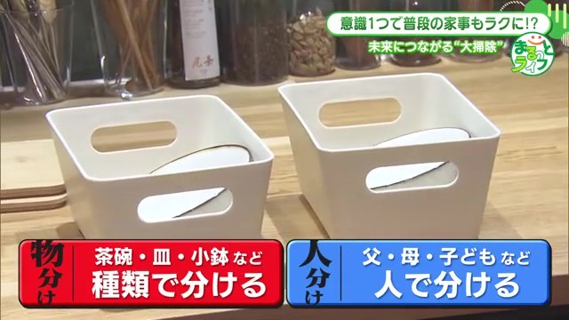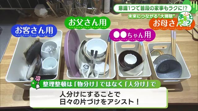 しかし蒲原さんは「人分け」という独特な方法を提案します。これは家族一人ひとりの食器をセットにしてまとめて収納する方法です。