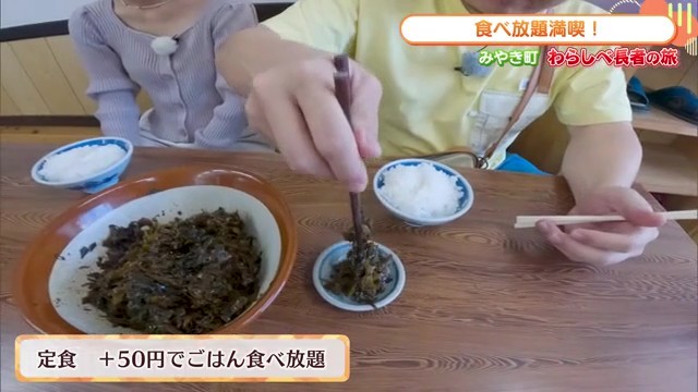ほろほろに煮込まれた角煮をごはんにのせ、さらに高菜を合わせると相性抜群。リポーターからは「最高!これいいね!」と大絶賛でした。