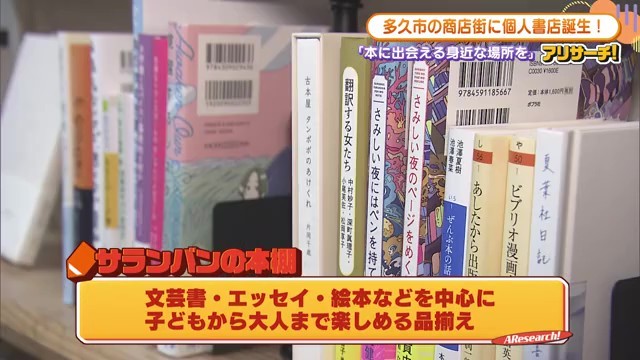 西村さんのこの言葉に、故郷の賑わいを取り戻したいという強い想いが込められています。店内には約300冊の本が並び、文芸書、エッセイ、絵本を中心に、子どもから大人まで楽しめるラインナップが揃っています。