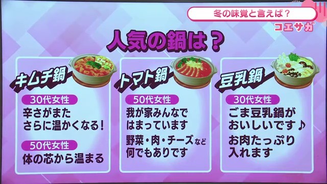 近年人気が高まっているトマト鍋や豆乳鍋についても、「何でも合う」という自由度の高さが魅力として挙げられました。