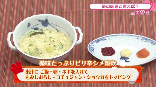 実際にスタジオで試食したリポーターからは「一味違う」「味が締まっていい」「体が温まる」といった好評の声が上がりました。いつもの雑炊が、薬味だけで一気に本格的な味になる手軽なアレンジとして、これからの寒い季節にぴったりです。