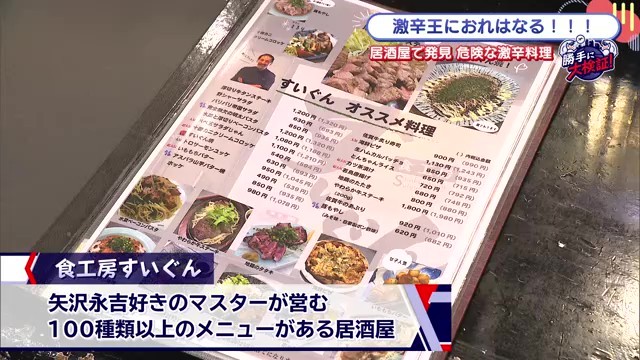 「激辛料理があるらしい」という噂を聞きつけ、玄海町の人気居酒屋「食工房 すいぐん」へ。100種類以上のメニューをそろえるお店で、想像を超える“危険級”の激辛グルメが存在するとのこと…。激辛好きでも震えるというその実力、実際にリポーターが調査してきました!