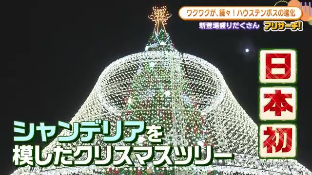 そして今年の目玉は、日本初となるシャンデリアを模したクリスマスツリーです。クリスタルの装飾がピカピカ輝き、ツリーの光や街の光をこのクリスタルが反射して、近くで見ると虹色に輝いています。「点灯した瞬間からお客さんみんな写真撮っている」という美しい仕上がりです。
