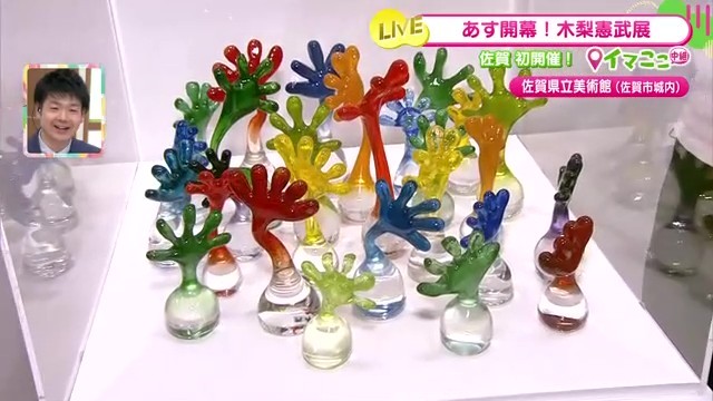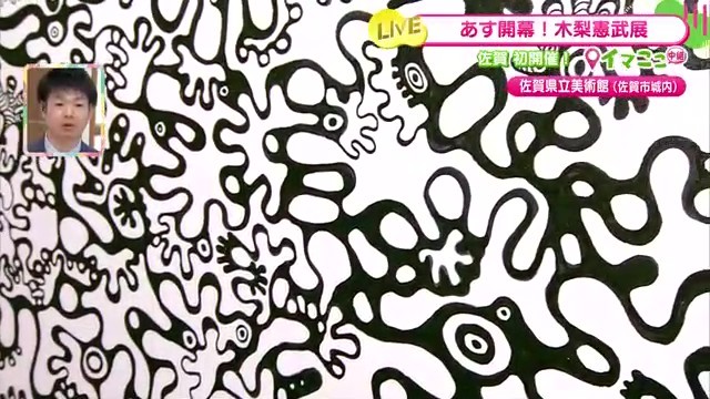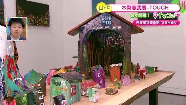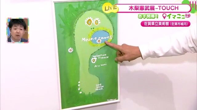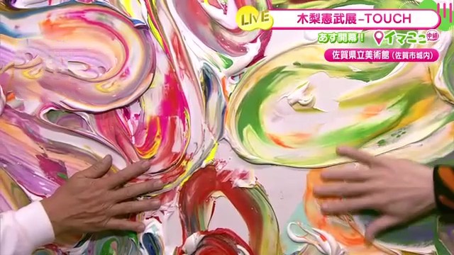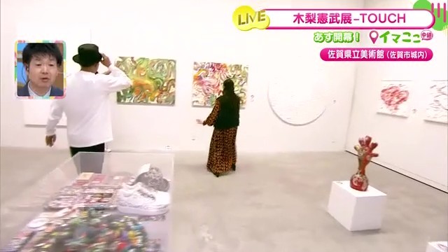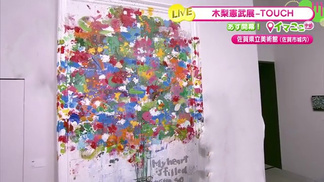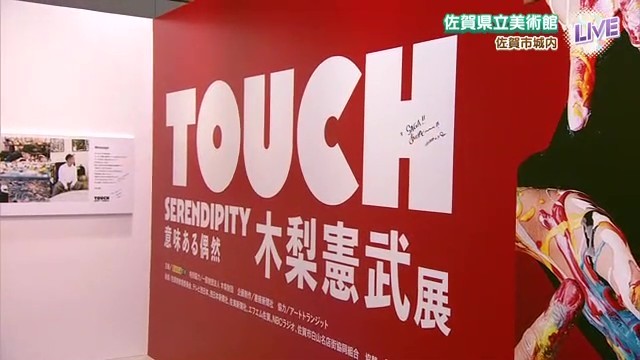 佐賀県立美術館で12月20日から開催中の「『木梨憲武展-TOUCH 』SERENDIPITY-意味ある偶然」。リポーターが展覧会前日の準備の様子を生中継で伝えました。