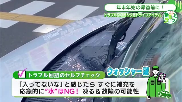 さらに、「これからの季節についてはウインドウォッシャーをかけて発進しようとしても、普通のウォッシャー液であれば、すぐ凍ってしまうっていう場合もございますので、凍結温度が低い寒冷地仕様とかのウォッシャー液を使っていただくことによって防げる」とアドバイスされていらっしゃいます。