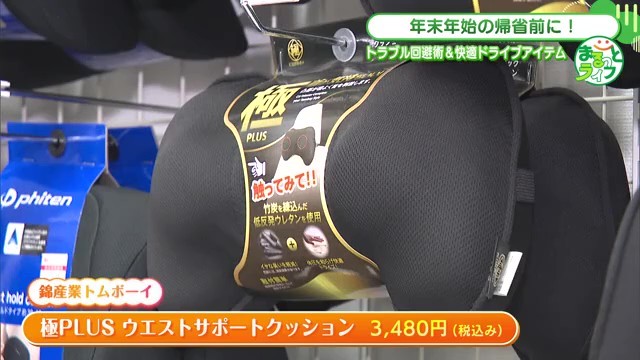 そして最後は、まさに年末年始、帰省のロングドライブにもってこいのアイテムです。「腰への負担が増えてくると思うので、ロングドライブの時に、腰当てのアイテム」を野田店長が紹介。