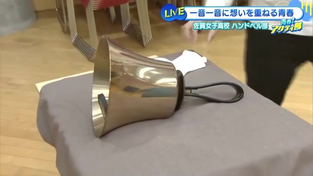 一方、最も大きなベルは佐賀女子高校で一番低い音が出るもので、重さは3キロ以上。「大きくて重たいので、普段の演奏ではなかなか使う機会がありません」と話しつつ、特別にリポーターも演奏を体験しました。