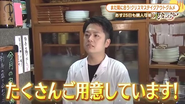 「明日のクリスマスで、パーティー用で食べられるご飯を探しているんですけど、ありますでしょうか?」というリポーターの質問に、店主の光延さんは「はい、たくさんご用意させていただいてます」と快く応じてくれました。