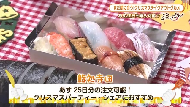 鮨処寺田では、「特上巻」「にぎり」ともに、クリスマス当日の25日も購入が可能です。※売り切れの可能性もあり