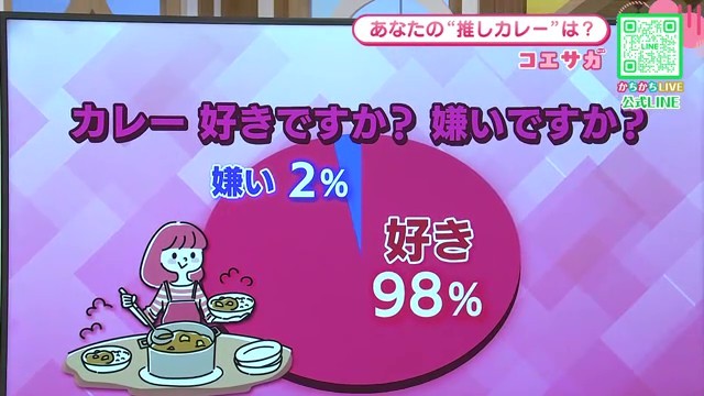 1月22日は「カレーの日」をご存知でしょうか。1982年のこの日、全国の学校給食で一斉にカレーが提供されたことが由来となっているこの記念日に合わせて、佐賀県内の視聴者から「推しカレー」についてアンケートを実施しました。驚異の98%が「好き」と回答したカレーは、まさに国民食。「ナッチーカレー」から「大根カレー」まで、ユニークな推しカレーと家族の思い出が詰まった秘伝の味、そして佐賀県内の絶品カレー店4選をご紹介します。