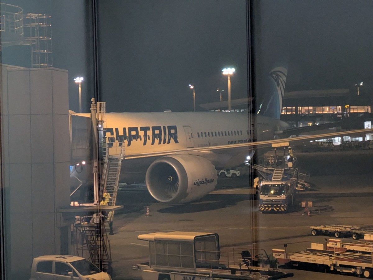 成田空港からエジプト航空機でエジプトのカイロまで直行です。