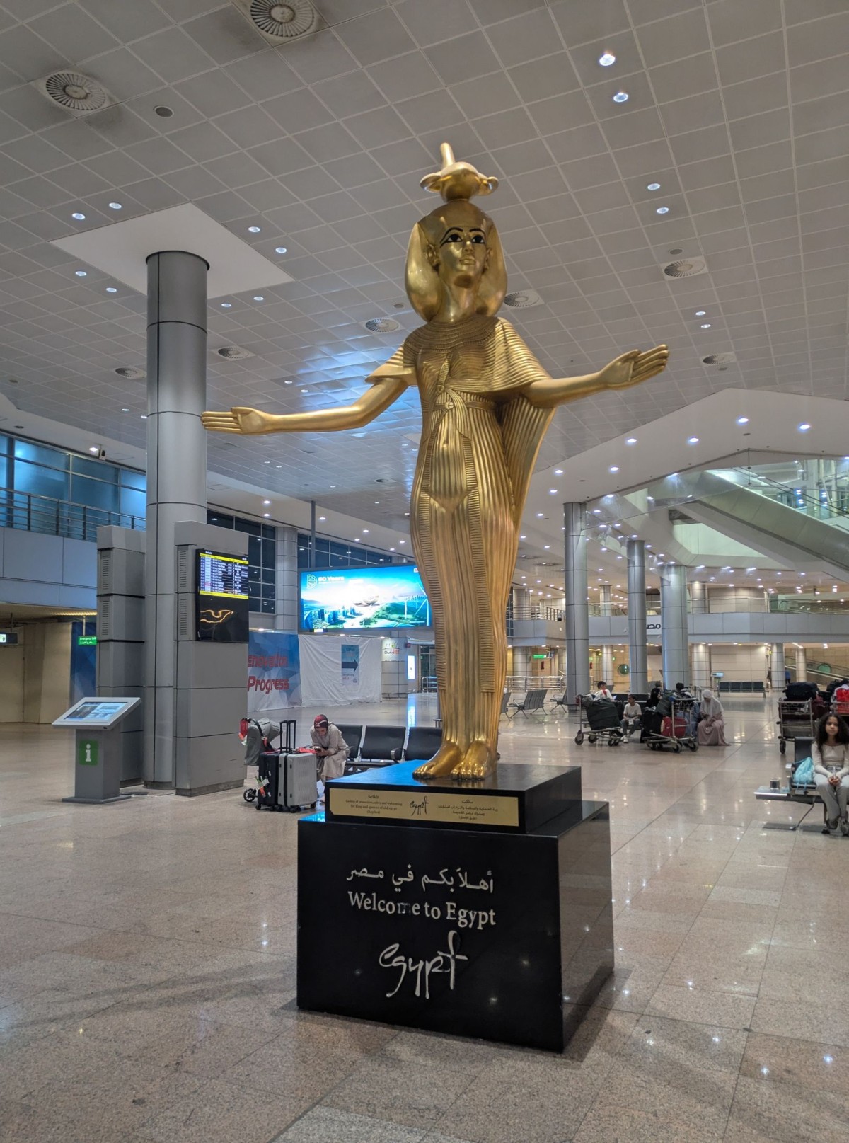 2回の機内食+軽食をおいしくいただき、なんとか長い長い時間を経て、カイロ空港に到着しました。