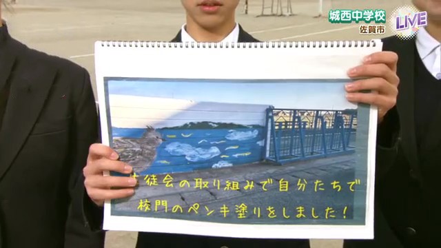 自分たちで校門を塗った学校愛あふれる城西中学校
