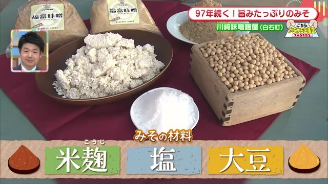 現在3代目の川崎さんは「昭和4年に創業し、みそを作って97年です」と語り、代々受け継がれた製法で地元の食卓を支え続けています。