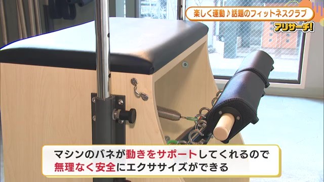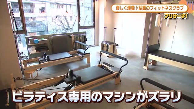 室内にはピラティス専用のマシンがずらりと並んでいます。マシンのバネが動きをサポートしてくれるので、体に負荷はかかりますが、無理なく安全にエクササイズができるのです。
