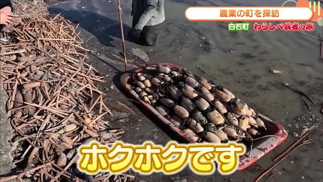 収穫されたレンコンは大小様々なサイズがあり、この時期のレンコンは「ホクホク」の食感が特徴的です。農家さんも「今のレンコンが好き」と話すように、冬場のレンコンは煮物などに最適な食材として人気があります。