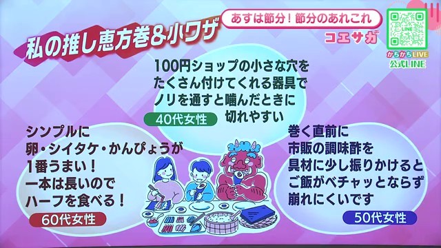 番組では恵方巻を美味しく食べるコツも紹介されました。