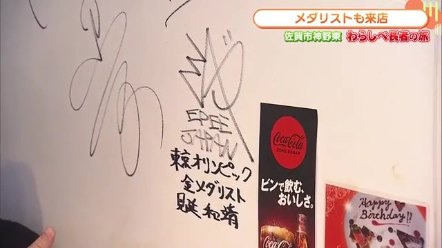 店内の壁には、オリンピック金メダリストのサインが飾られています。「アリーナが合宿に場所がいい」という立地条件もあり、フェンシングの選手など多くのアスリートが訪れるそうです。